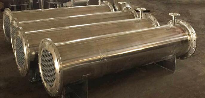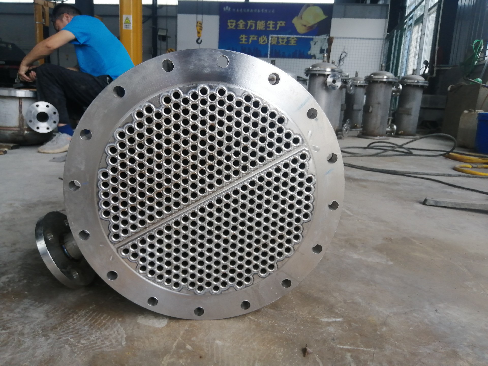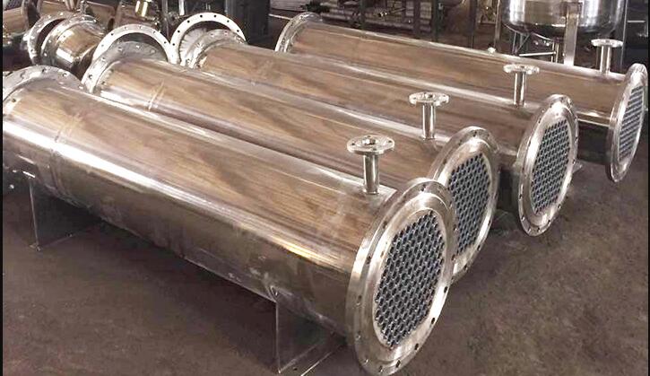 不銹鋼列管式換熱器是目前化工及酒精生產上應用較廣的一種換熱器。它主要由殼體、管板、換熱管、封頭、折流擋板等組成。所需材質,可分別采用普通碳鋼、紫銅、或不銹鋼制作。在進行換熱時,一種流體由封頭的連結管處進入,在管流動,從封頭另一端的出口管流出,這稱之管程;另種流體由殼體的接管進入,從殼體上的另一接管處流出,這稱為殼程列管式換熱器。